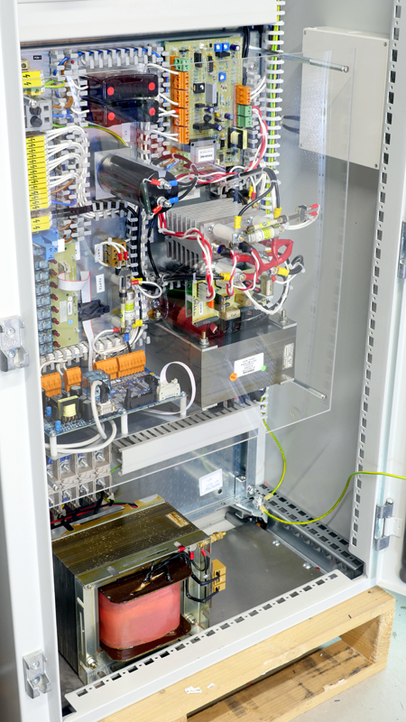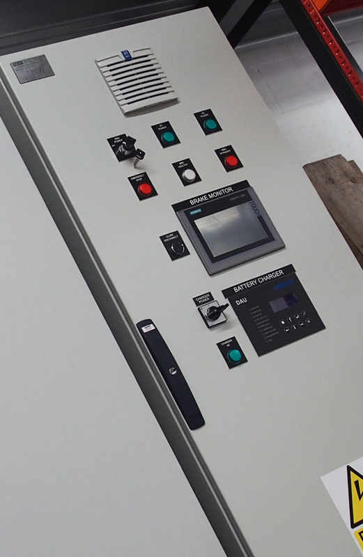 The Battery Charger converters the 240VAC input into a 272 DC voltage connected in parallel to the load of the brake coils to trickle charge the batteries when not in use. There is also a 2 hour boost function which will increase the charge voltage to 286VDC. The maximum charging current will be 6A allowing for a controlled and reliable charge.