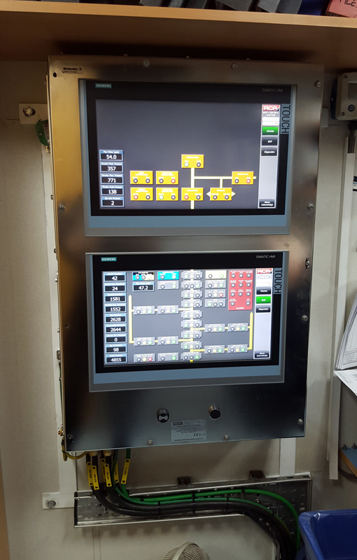 The single biggest advantage of using PLC / HMI technology in control systems is that the panels tend to be much smaller and fibre optic communication cables can be utilised in place of the more common multicore cables greatly reducing both cabling costs and installation time.