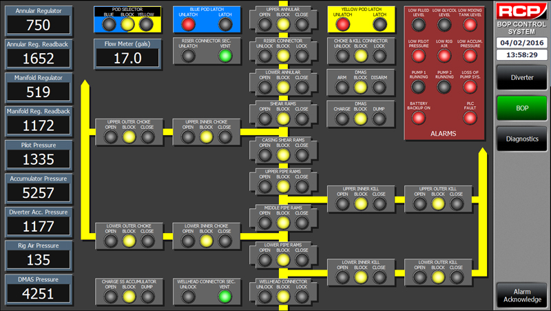 BOP control systems can be supplied as either traditional push-button panels or with a modern HMI touch-screen control. Both options utilise Siemens PLC technology to reliably control and log a range of BOP and Diverter functions, all BOP functions can be recorded with the addition of the optional RCP event logger. Where required, dual redundant control systems can be supplied to offer an additional level of safety and reliability.