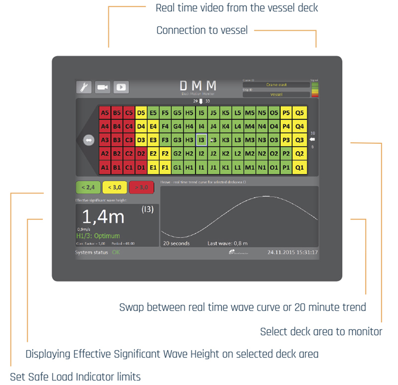 By using the DMM all the above mentioned uncertain factors are eradicated. With the DMM system, the Vessel Officer and Crane Operator can make safe decisions based on facts.