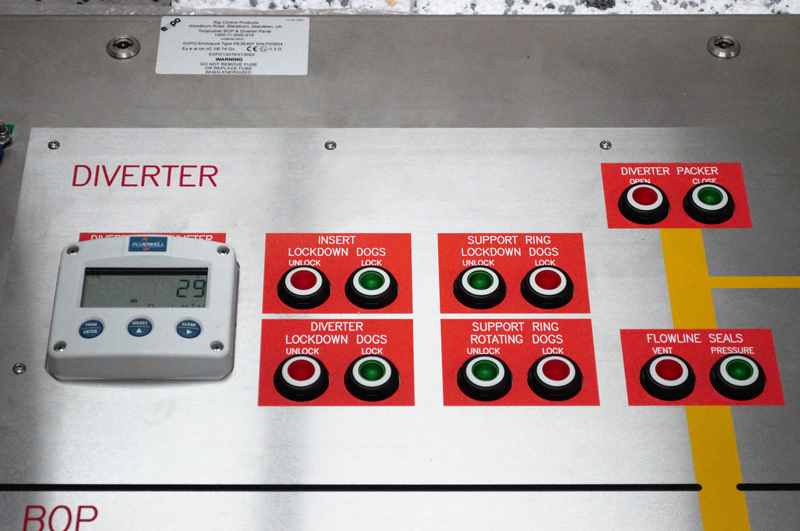 To perform this task, the Diverter is designed to close the annulus and divert the kick to the overboard valves, valve sequences can be pre-set so that the diverter only closes the packer element once there is a safe path for the returns to flow, sequence valves can also actuate lockdown dogs to maintain various elements of the diverter in place during the well control situation.