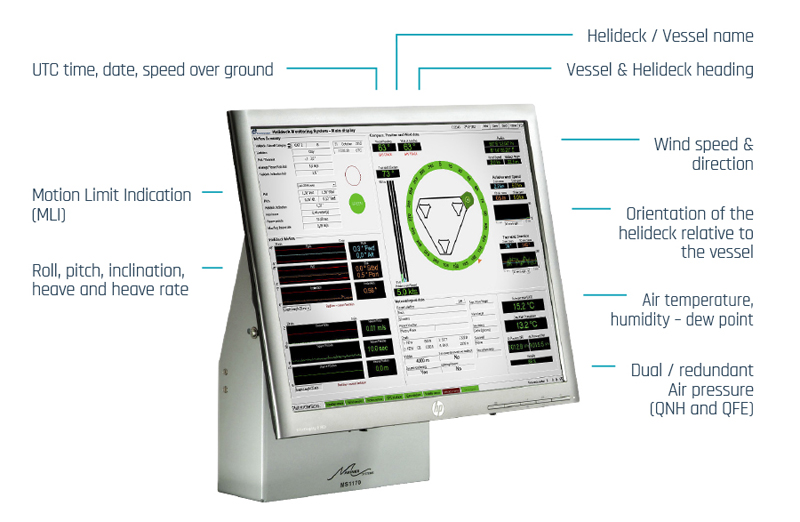 The system provides motion and meteorology information for offshore aviation and has various unique features which contribute to its success. Pre-flight reports are issued to assist with flight planning and can be emailed to operators to assist with forward planning and ensure safe condition for travel.